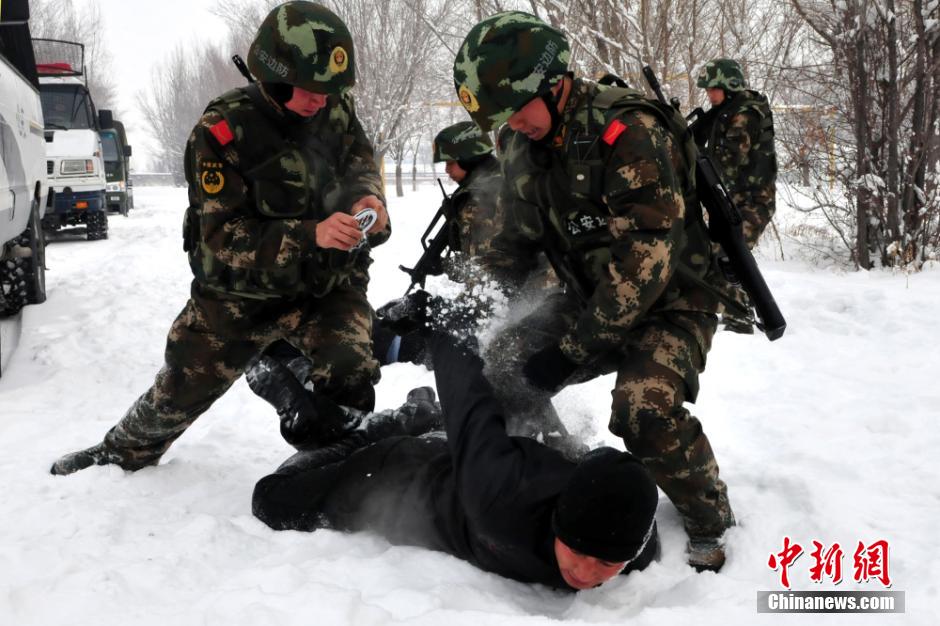 图为“无预告式”演练时迅速制服来袭的“犯罪嫌疑人”。 范昕羽 摄