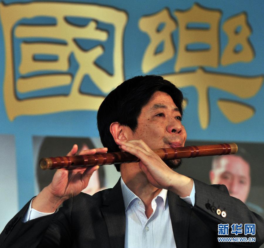 12月16日,笛子演奏家王次恒表演民族乐剧《印象·国乐》选段。新华社发(吴景腾 摄)