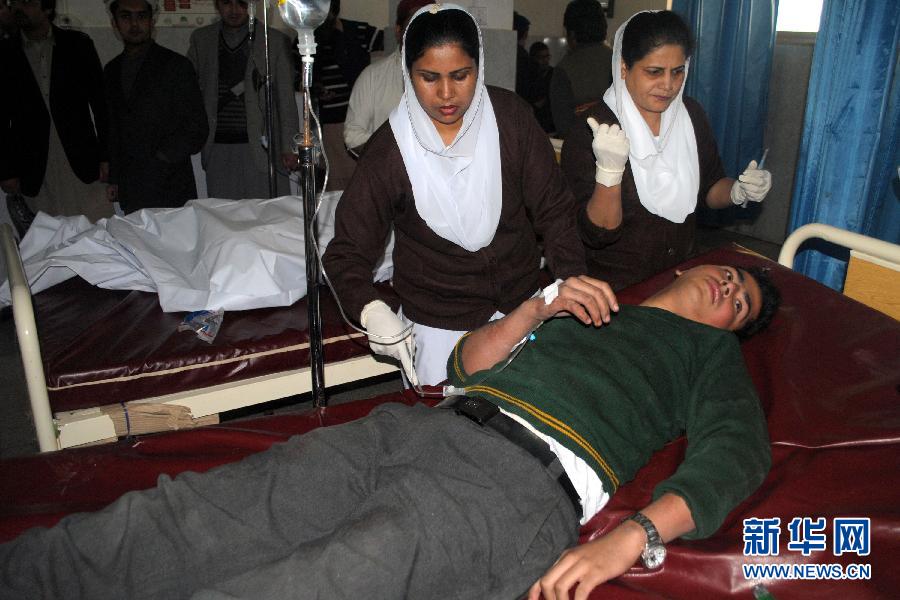 12月16日,在巴基斯坦白沙瓦市,一名受伤学生在医院接受治疗。新华社发(乌玛尔摄)