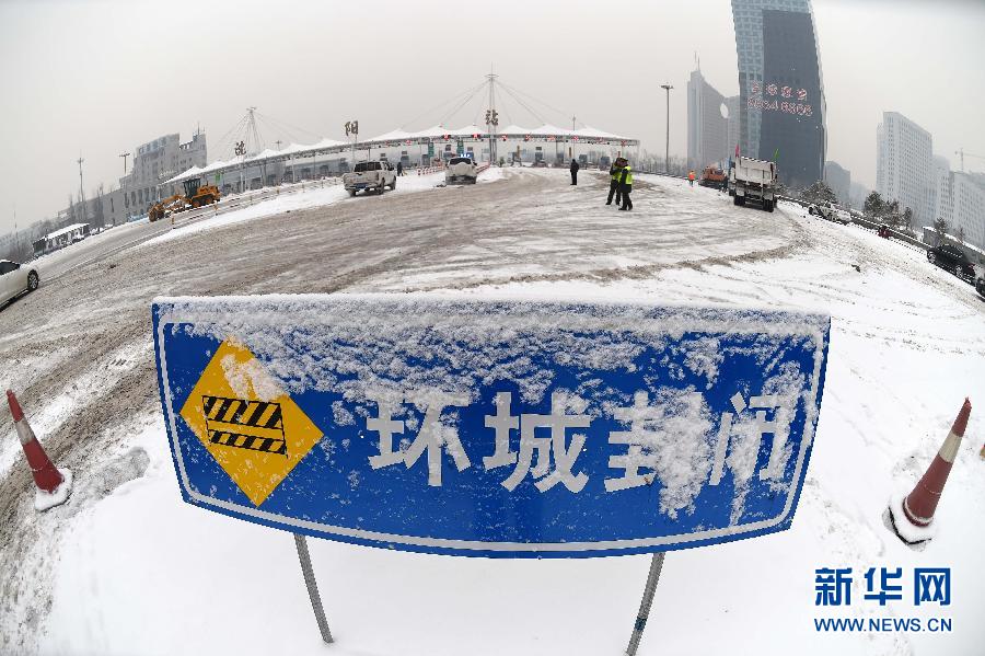 12月15日,沈丹高速公路沈阳站收费口受大雪影响临时封闭。受强冷空气影响,辽宁省从15日起再次迎来大风降雪降温天气,省内多条高速公路以及沈阳桃仙国际机场因此关闭。雪后全省最低气温将降至零下27摄氏度。新华社记者李钢摄