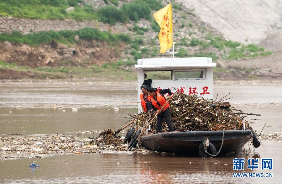 三峡库区重庆段奉节县清漂队的队员在长江上工作(2012年7月18日摄)。三峡工程蓄水过后,往日奔流不息的滔滔长江化作高峡平湖,一碧万顷。然而,这一池碧水,是靠一群人十年如一日默默无闻奉献换来的。他们驾着小船,用竹竿撑着网兜,不分早晚,无论寒暑,在江面上清理漂浮的垃圾。这就是三峡库区的清漂队。新华社记者 刘潺 摄