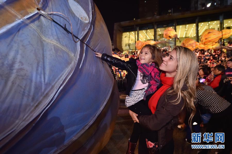 12月14日,一对母女在观看气球玩偶。当日,澳门举行“拉丁城区幻彩大巡游”,拉开庆祝回归15周年系列庆祝活动的序幕。本次巡游活动以庆祝回归15周年为主题,体现“爱、和平、文化共融”的理念。来自法国的空中飞人、西班牙的大型气球和风筝、葡萄牙的民族风情热舞等海外演出团队,中国的秧歌队……超过50个艺术团队共同为市民和游客带来一场东西方文化共融的大狂欢。新华社记者李鑫摄