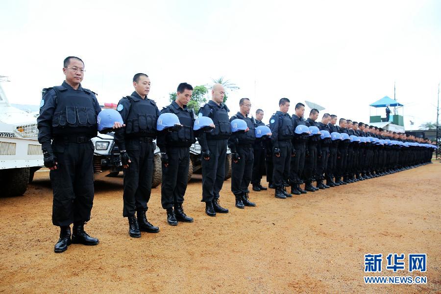 当日,在利比里亚格林维尔执行维和任务的中国第二支驻利比里亚维和警察防暴队在营地举行南京大屠杀死难者国家公祭日默哀活动,深切缅怀南京大屠杀死难者,寄托哀思,表达忠实履行维和使命,维护世界和平的坚定信心。新华社发(杨乾坤摄)