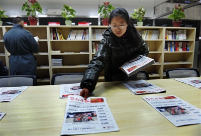 每天早上,工作人员把当天的劳动午报摆放在座位上。