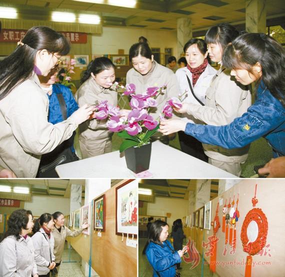 3月25日,云硫职工在欣赏出自该集团公司女职工之手的各式手工艺品。由云硫集团公司工会举办的“巧手女工 绘梦云硫”女职工庆“三八”手工艺作品展活动,目前已进入网络投票的最后阶级。此活动分为作品征集、网络投票、评委评审和作品展示四个环节,征集的55幅作品有精心绣制的十字绣,有用生活中废旧物品做成的台灯和收纳盒,有花色各异的针织作品,还有栩栩如生的工笔画,从不同角度展示了云硫女职工的聪明智慧和精神风貌