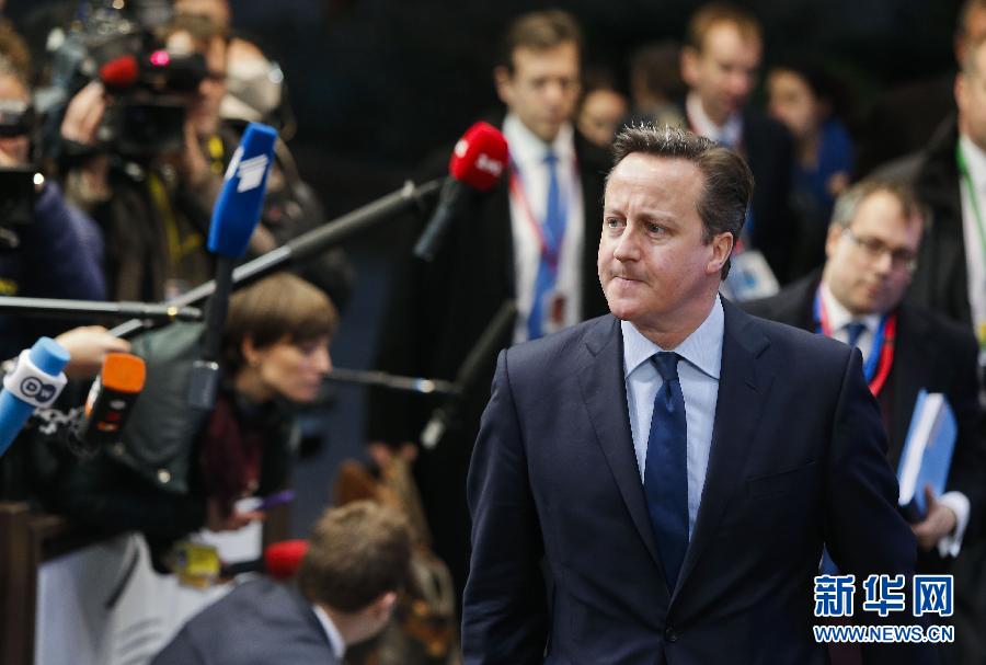 12月18日,比利时首都布鲁塞尔,英国首相卡梅伦抵达欧盟峰会会场。当日,为期两天的欧盟冬季峰会在布鲁塞尔开幕,主要议题包括商讨如何落实投资方案和缓解乌克兰局势。 新华社记者 周磊 摄