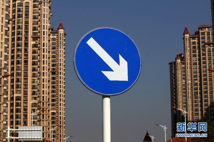 12月18日在江苏南通一楼盘前拍摄的交通指示标志。 12月18日,国家统计局发布的住宅销售价格数据显示,11月份70个大中城市新建商品住宅价格环比下降的城市有67个,比10月份减少了2个;持平的城市有3个,比10月份增加了2个。环比下降的67个城市中,最大降幅为1.4%,降幅超过1%的城市仅有5个,比10月份减少了14个;降幅比上月收窄的城市有48个,比10月份增加了4个。新华社发