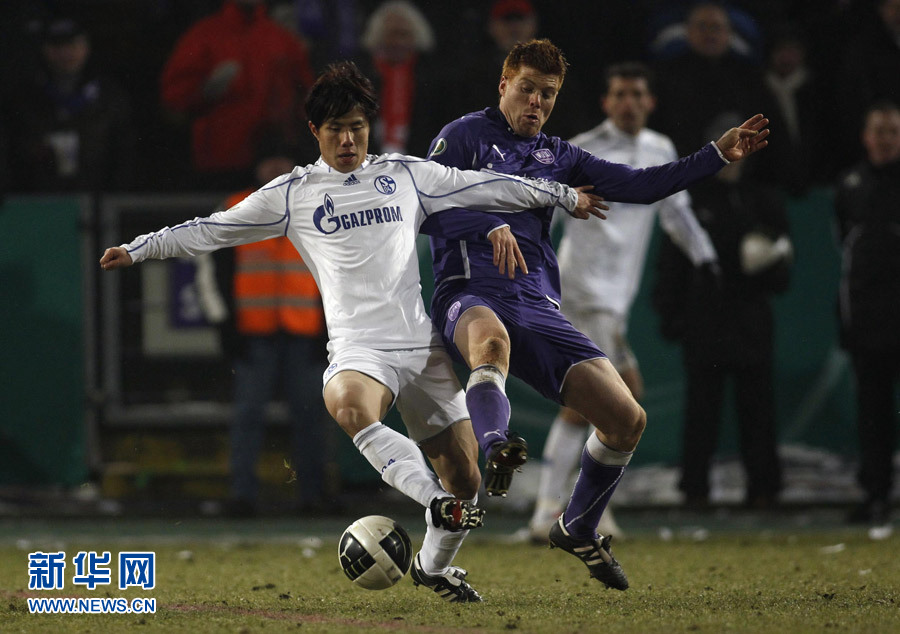 图为2010年2月10日,效力德甲沙尔克04队的中国球员蒿俊闵(左)在比赛中拼抢。蒿俊闵在效力沙尔克04队期间,球队获得了2010-2011赛季德国电信杯冠军;在德期间出场14次。 新华社发