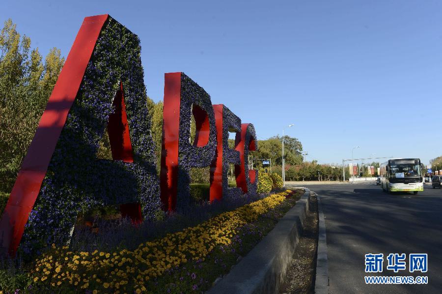 这是11月2日拍摄的北京怀柔雁栖湖周边APEC主题景观。北京APEC会议期间,为确保首都大气质量,京津冀鲁等步调一致,联防联控,启动最高级别减排措施,并取得明显成效。中央经济工作会议指出,要坚持不懈推进节能减排和保护生态环境,既要有立竿见影的措施,更要有可持续的制度安排,坚持源头严防、过程严管、后果严惩,治标治本多管齐下,朝着蓝天净水的目标不断前进。新华社记者 马宁 摄