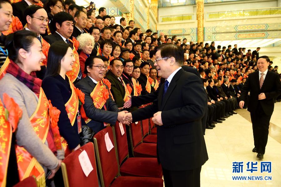12月18日,文化部部长蔡武与获表彰代表握手。当日,文化部、人力资源和社会保障部在北京举行活动,表彰98个“全国文化先进单位”、150个“全国文化系统先进集体”、252名“全国文化系统先进工作者”和6名“全国文化系统劳动模范”。这些单位和个人是过去5年间文化战线上涌现出来的先进典型,对文化建设起到了有力的导向性、示范性和激励性作用。新华社记者 金良快 摄