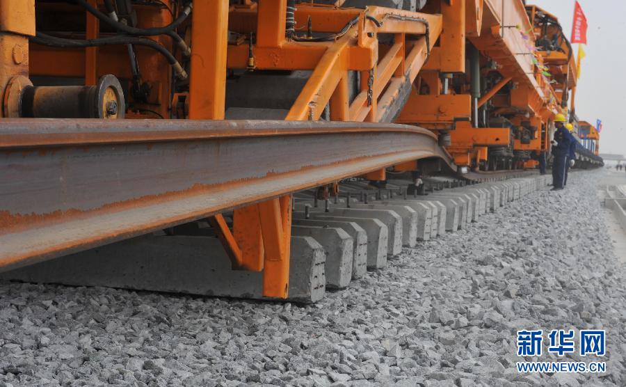 12月18日,铺轨车在工作人员的操作下铺设铁轨、枕木。当日,新建海南西环铁路工程全线铺轨在海南东方正式开始。新建西环铁路北起海口市,沿海岛西部海岸,经过澄迈、临高、儋州、昌江、东方、乐东6个市县,南至三亚市,设计速度200公里/小时,项目总投资约271亿元,预计2015年年底达到开通条件。据施工单位中铁四局工作人员介绍,新建海南西环铁路建成后,将形成环岛快速铁路,并连接海口美兰机场和三亚凤凰机场。 新华社发(杨冠宇 摄)