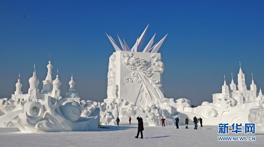 当日,第27届哈尔滨太阳岛国际雪雕博览会大型主塑《绽放》完工。《绽放》大型主塑由7部分组成,主体高度39米,长度360延长米,占地面积1.2万平方米,经过100余位工匠历时9天完成。这个主题雕塑不仅是本届雪博会的最大主塑,其高度、长度、占地面积也创下雪博会之最。第27届哈尔滨太阳岛国际雪雕博览会将于12月20日开幕。新华社发(李毅 摄)