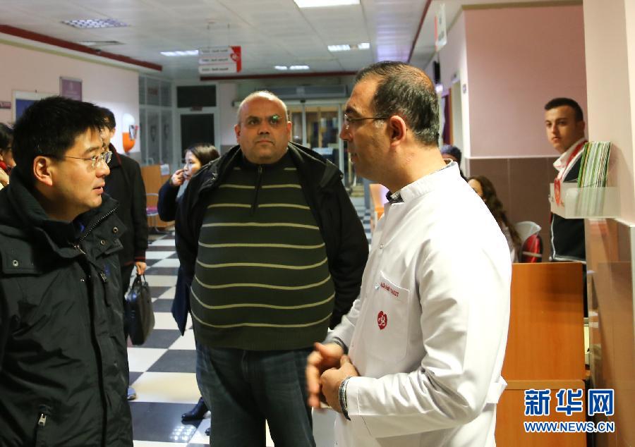 12月17日,在土耳其内夫谢希尔,中国驻土耳其大使馆政务参赞花有(左一)向医生询问受伤中国游客的情况。当日上午发生在土耳其卡帕多基亚的热气球坠落事故,共造成中国游客1死4伤,其中2人重伤、2人轻伤。4名伤者都被送往当地或周边地区的医院接受救治。新华社记者邹乐摄