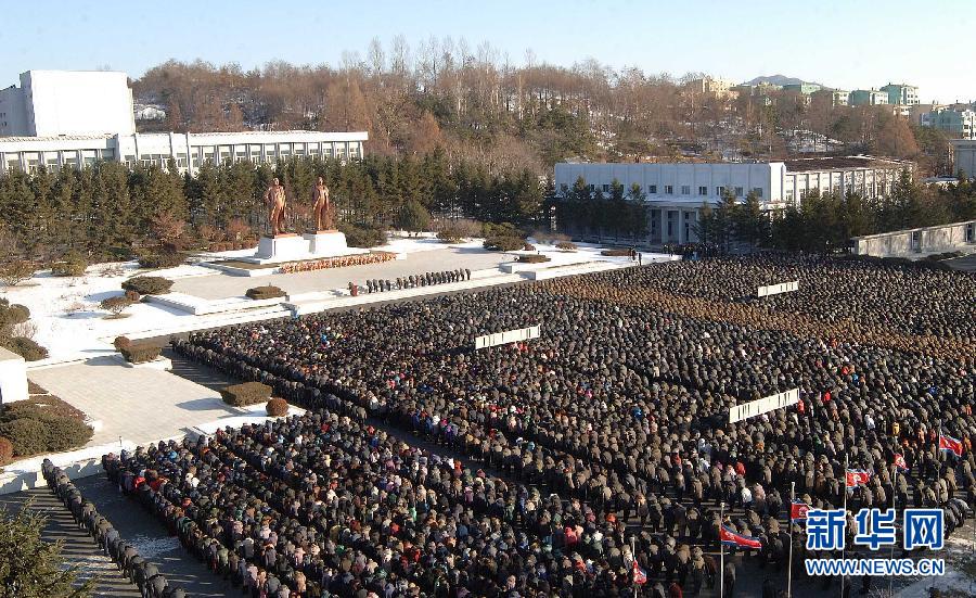朝中社12月17日提供的照片显示,朝鲜全国各地民众17日举行活动,纪念已故最高领导人金正日逝世三周年。金正日于2011年12月17日因病逝世。新华社/朝中社
