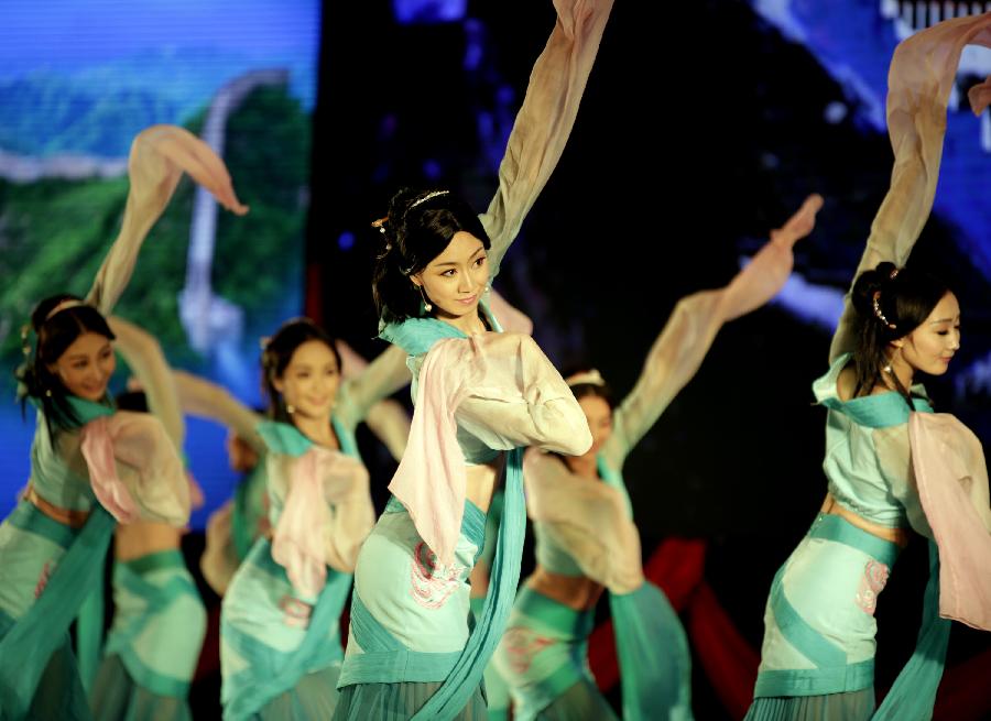 12月16日,在缅甸内比都,中国演员在闭幕式上表演。当晚,中国-东盟文化交流年闭幕式在缅甸内比都第二国际会议中心举行。中国和东盟艺术家表演了各富特色的精彩节目。 新华社发(吴昂摄)