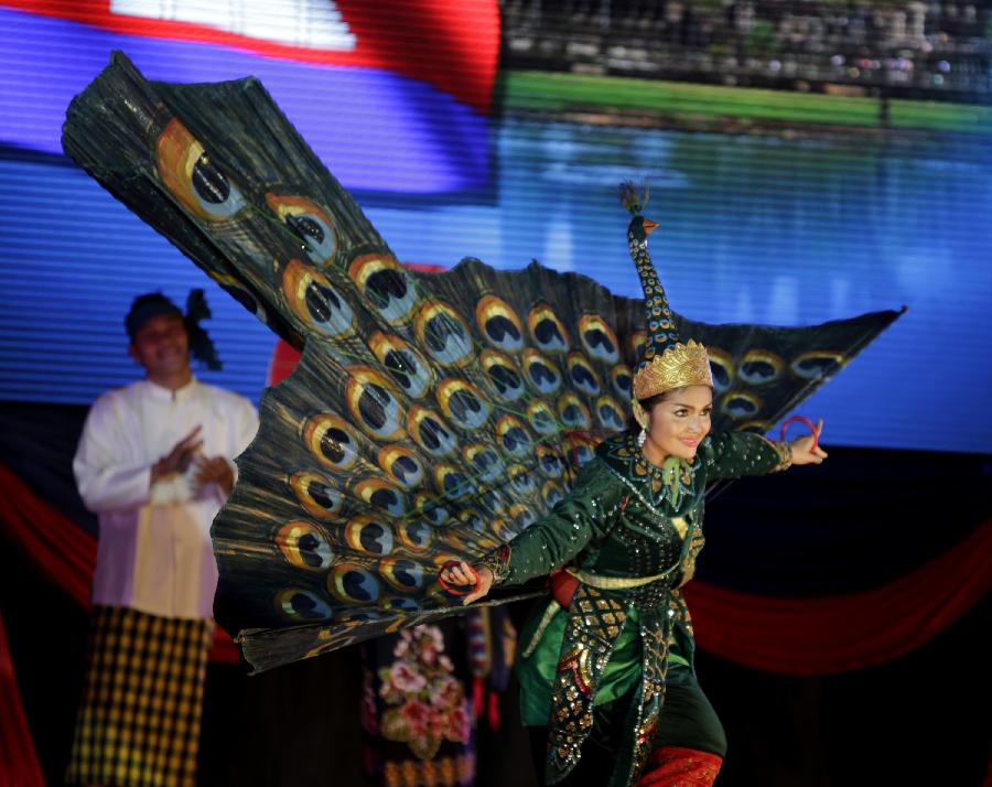 12月16日,在缅甸内比都,马来西亚演员在闭幕式上表演。当晚,中国-东盟文化交流年闭幕式在缅甸内比都第二国际会议中心举行。中国和东盟艺术家表演了各富特色的精彩节目。 新华社发(吴昂摄)
