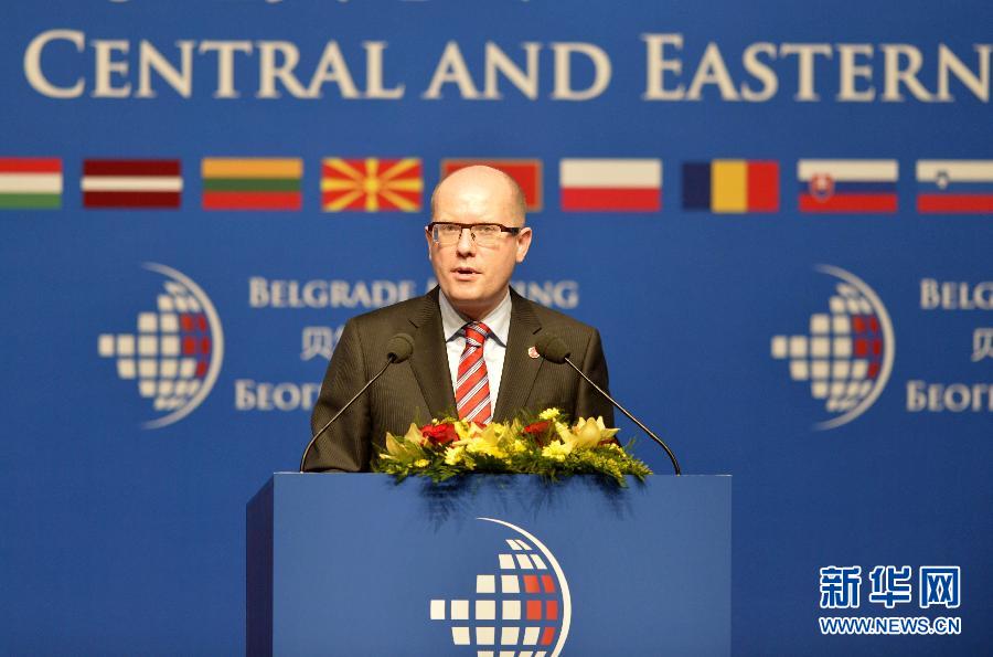12月16日,在塞尔维亚首都贝尔格莱德,捷克总理索博特卡在论坛上致辞。 当日,中国-中东欧国家第四届经贸论坛在贝尔格莱德举行。新华社记者刘力航摄