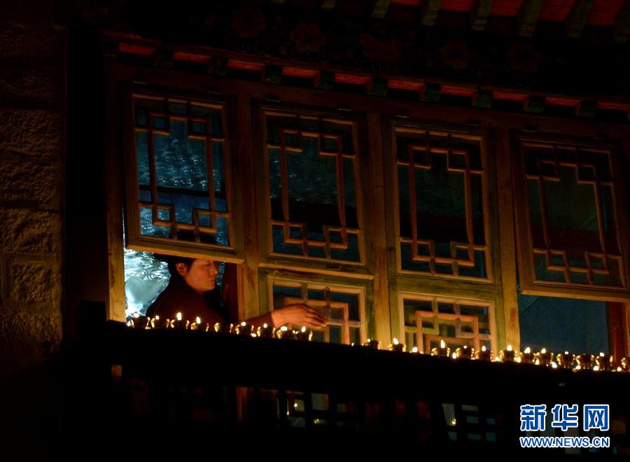 12月16日是藏历十月二十五,藏传佛教信众传统的“燃灯日”。“燃灯日”藏语音译“甘丹昂确”,意为“五供”,是藏传佛教格鲁派创始人宗喀巴大师圆寂成佛的日子。这天,藏传佛教僧俗信众都要点燃酥油灯,昼夜不灭,表达对大师的纪念,同时祈愿大师赐予聪慧、吉祥和幸福。新华社记者 刘东君 摄