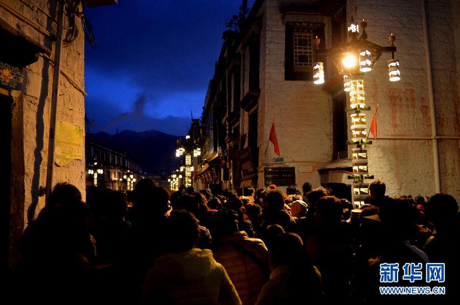 12月16日晚,信教群众沿着拉萨八廓街转经。