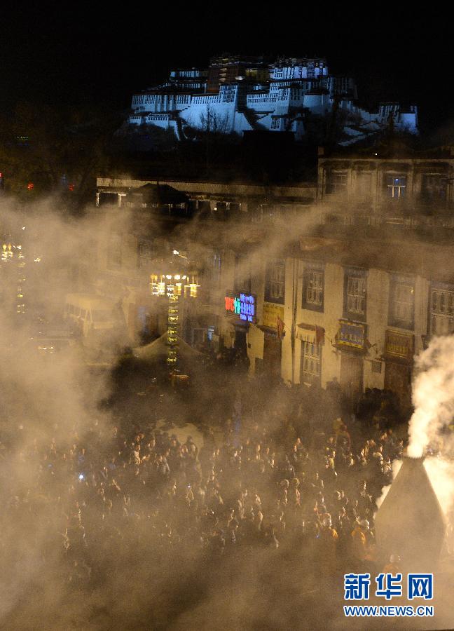 12月16日晚,信众来到大昭寺广场参加“燃灯日”活动。
