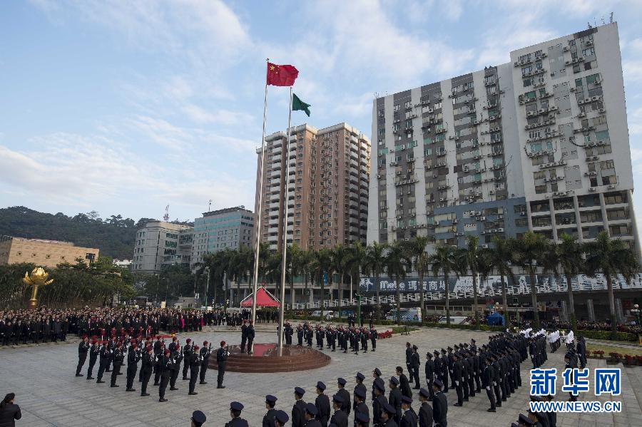 12月20日,澳门特区政府在金莲花广场举行升旗仪式,庆祝澳门回归祖国15周年。 新华社记者吕小炜摄