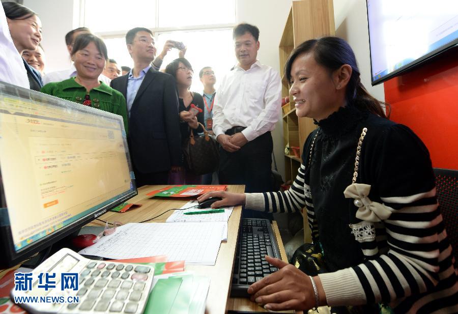 阿里巴巴“农村淘宝”项目在浙江省桐庐县启动,桐庐县金家村“农村淘宝”服务站的代购人郑礼英(右一)帮助村民成交“农村淘宝”第一单(10月29日摄)。网上生鲜越卖越红火;职业农民进校学营销;大豆、棉花“试水”目标价格;治山治水、为后代留一块好田……今年以来,我国农业领域悄然发生新变化,消费需求更加多样,农业“拥抱”互联网,着力改善农业生态环境,农业新鲜事给百姓生活带来了新变化。新华社记者王定昶摄