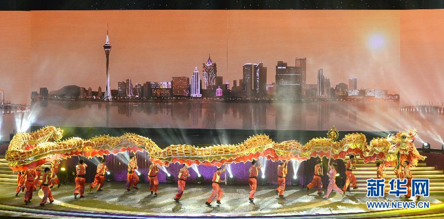 12月19日,庆祝澳门回归祖国15周年文艺晚会在澳门举行。这是演员在表演舞龙。 新华社记者秦晴摄