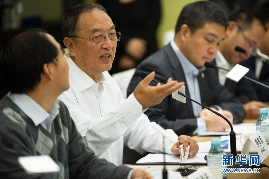 在北京接受媒体集体采访时,柳传志(左二)向记者介绍“联想之星”相关情况(12月13日摄)。 “联想之星”是联想控股和中国科学院共同发起的专业的创业培训孵化机构。柳传志曾经说,如果在他40岁创办联想时就遇到联想之星,创业会少走一些弯路,联想电脑也许会更早成功。作为一家源于中国科学院的企业,联想控股经过30年的发展,从单一IT领域——联想集团,到构建起“投资+实业”的创新商业模式,率先走出了一条具有中国特色的科研院所高科技产业化道路。一路走来,柳传志一直在思考,高科技成果究竟怎样产业化?如何能在中国复制出更多联想?新华社记者 金立旺 摄