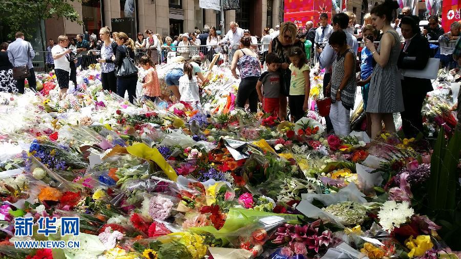 12月19日,在澳大利亚悉尼,人们为咖啡馆人质劫持事件遇难者献花。连日来,民众纷纷来到悉尼发生人质劫持事件的咖啡馆外献花,悼念遇难者。 新华社记者金林鹏摄