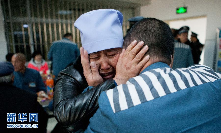 12月19日,宁夏银川监狱服刑人员与亲属见面。当日,宁夏银川监狱举办以“真情相助、共筑未来”为主题的监狱开放日活动,邀请近300名服刑人员家属走进监狱开展亲情帮教。据了解,2014年,宁夏银川监狱分四批邀请1200余名服刑人员亲属和社会爱心人士走进监狱,通过亲情座谈、物质帮扶、技能培训等方式,使服刑人员增进对家庭、亲人的责任感,在思念、感恩、悔悟中积极改造。新华社记者 陈君清 摄