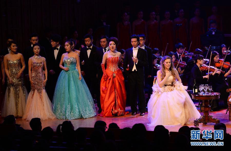 12月19日,演员在演出歌剧《茶花女》。当日,第13届西安国际音乐节拉开帷幕,歌剧《茶花女》作为开幕演出在西安音乐厅首演。据悉音乐节将持续至1月18日,期间共有6大门类30场演出与市民见面。新华社记者 刘潇摄