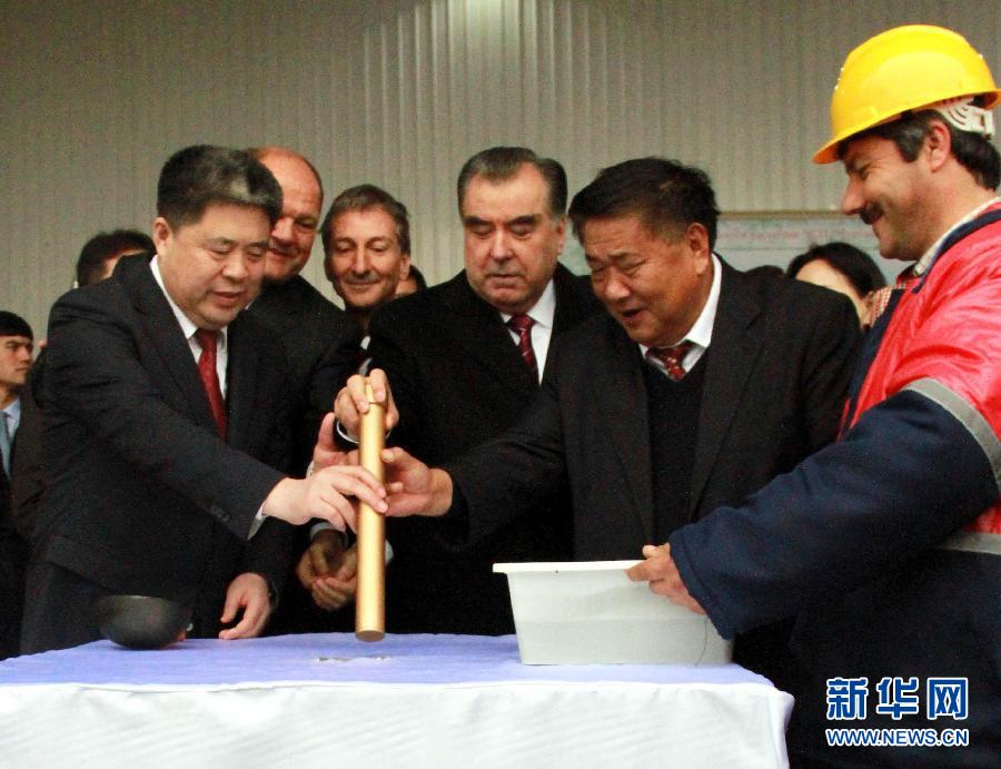12月19日,在塔吉克斯坦丹加拉市郊,塔吉克斯坦总统拉赫蒙(前排右三)和中国新疆维吾尔自治区党委副书记韩勇(前排左一)一起将象征着两国友谊的美好愿望放入奠基墩中。当日,中泰新丝路塔吉克斯坦农业纺织产业园项目奠基仪式在塔吉克斯坦丹加拉市郊举行。该产业园由新疆中泰新丝路农业投资有限公司建设,累计投资2.28亿美元。新华社记者王峰摄
