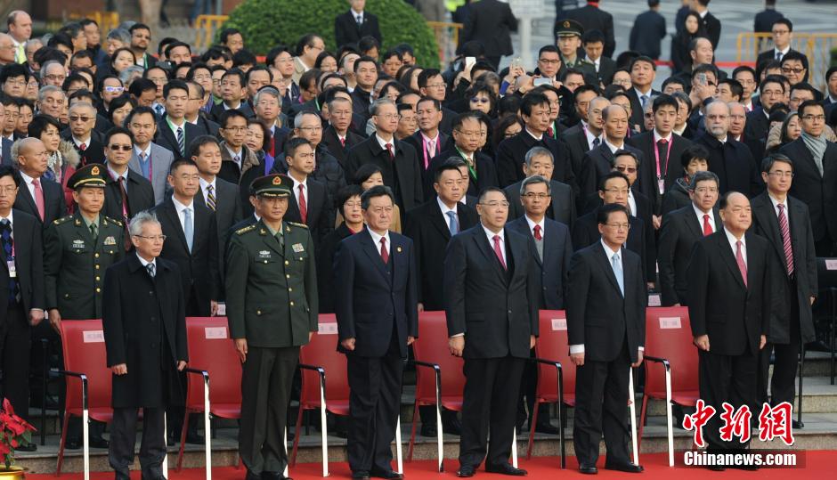 12月20日,澳门特区政府在金莲花广场举行隆重的升旗仪式,庆祝澳门回归祖国15周年。澳门特别行政区行政长官崔世安、澳门中联办主任李刚等出席。中新社发 谭达明 摄