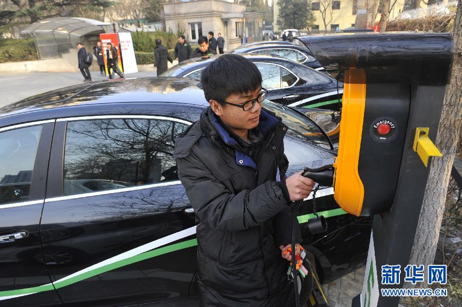 12月18日,一名工作人员在科技部电动汽车分时租赁点检查电动汽车的充电桩。当日,科技部电动汽车分时租赁点正式启动投入使用。为推进公务用车制度改革,倡导节能环保理念,满足员工公务出行需求,科技部在办公区域内率先建立电动汽车分时租赁点,首批引进10辆北京一家新能源汽车租赁公司旗下的对公电动汽车分时租赁服务品牌“GREENGO 绿狗公务车”。 新华社记者鲁鹏摄