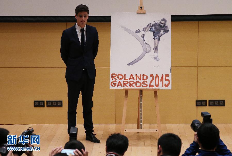 当日,由中国艺术家杜震君设计的2015年法国网球公开赛(法网)官方海报揭幕仪式在北京举行。据悉,杜震君也是第一位为法网创作海报的中国艺术家。 新华社发(李方宇摄)