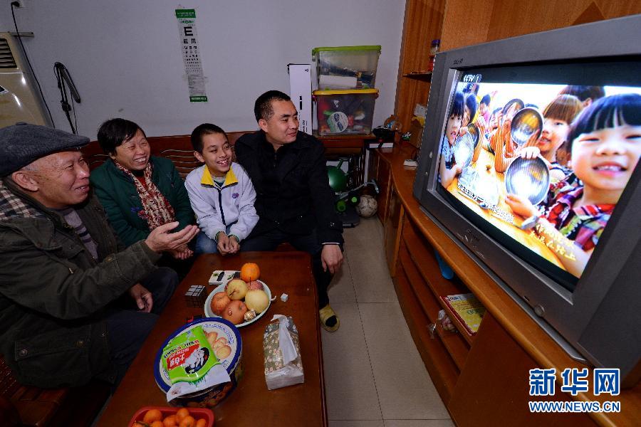 12月18日,福州市仓山区采菊苑的老党员秦一中(左一)和家人在收看《作风建设永远在路上》电视专题片。由中央纪委宣传部、中央电视台联合摄制的电视专题片《作风建设永远在路上——落实中央八项规定精神正风肃纪纪实》于12月15日至18日在中央电视台综合频道晚上黄金时段播出。连日来,吸引了众多党员干部和市民群众收看,接受党风廉政教育。新华社记者 张国俊 摄