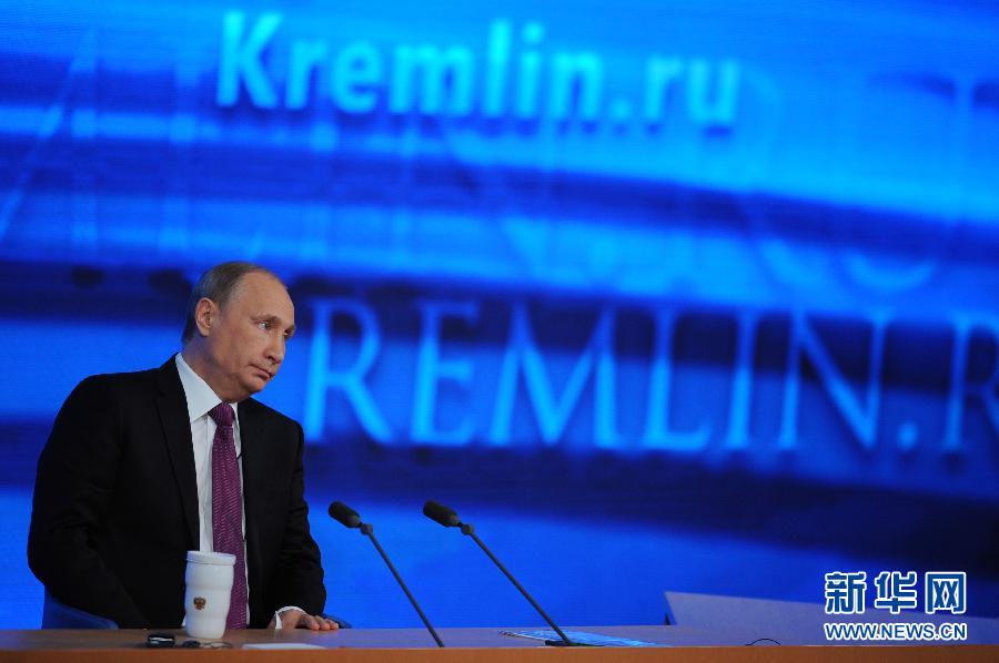 12月18日,俄罗斯总统普京出席在莫斯科举行的年度大型记者招待会。普京在当日举行的年度大型记者招待会上表示,俄目前的经济困境主要是由外部因素引起的,目前俄金融经济形势仍保持在正常轨道。在最坏情况下,俄罗斯能够在两年内走出经济困境。新华社记者戴天放摄