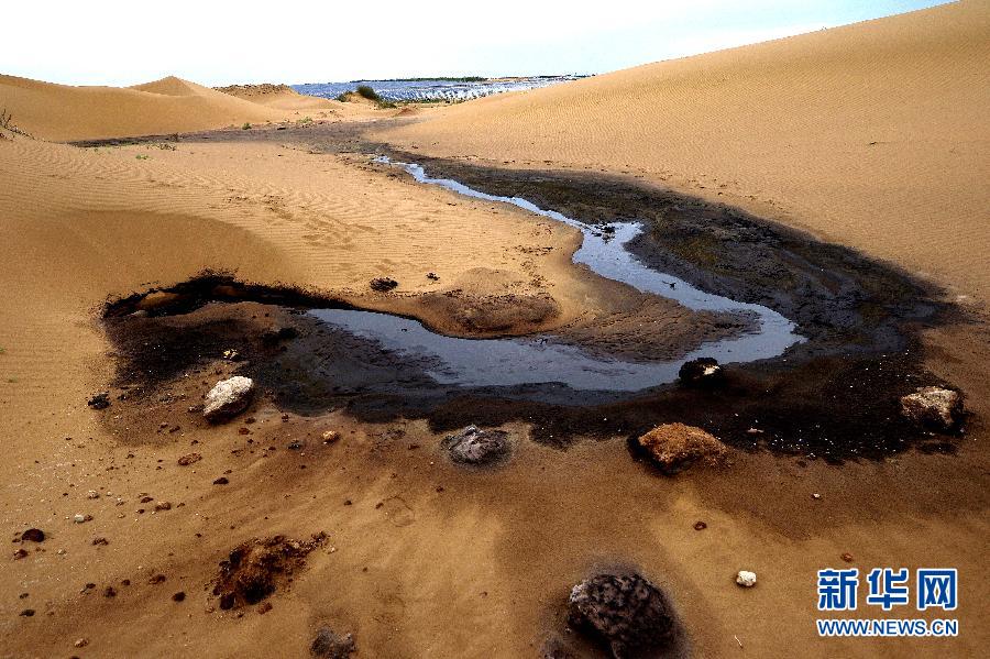 这是位于腾格里沙漠边缘的宁夏明盛染化有限公司污水池堤坝下的排水管排出的污水(9月6日摄)。因没有采取有效治污措施,该企业多年来向腾格里沙漠偷排污水,2014年9月被调查处理。中央经济工作会议指出,要坚持不懈推进节能减排和保护生态环境,既要有立竿见影的措施,更要有可持续的制度安排,坚持源头严防、过程严管、后果严惩,治标治本多管齐下,朝着蓝天净水的目标不断前进。新华社记者 王鹏 摄
