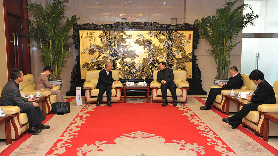 12月18日上午,新华社副社长慎海雄在北京会见中国国际航空股份有限公司党委书记樊澄一行。双方就新华社与国航在新媒体环境下的优势互补等工作进行了商谈。新华社发(和静远 摄)