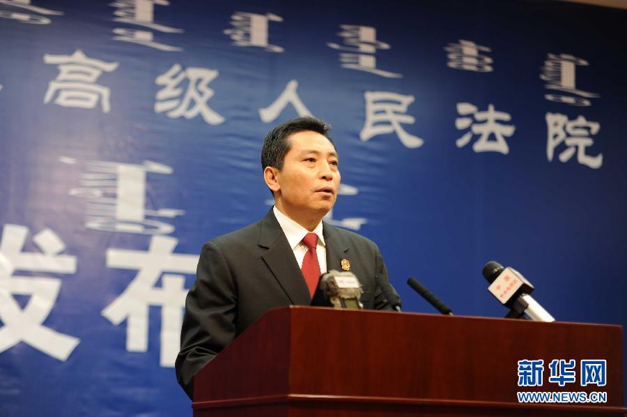 12月15日,内蒙古自治区高院新闻发言人李生晨在新闻发布会上宣读呼格吉勒图案再审的无罪判决。当日,内蒙古自治区高级人民法院就呼格吉勒图案再审举行新闻发布会,宣读呼格吉勒图案再审的无罪判决,并表示自治区党委已责成有关部门组成调查组,就呼格吉勒图案责任问题进行调查。内蒙古自治区高级人民法院15日对呼格吉勒图故意杀人、流氓罪一案作出再审判决,并向申诉人、辩护人、检察机关送达了再审判决书。 新华社记者张领 摄