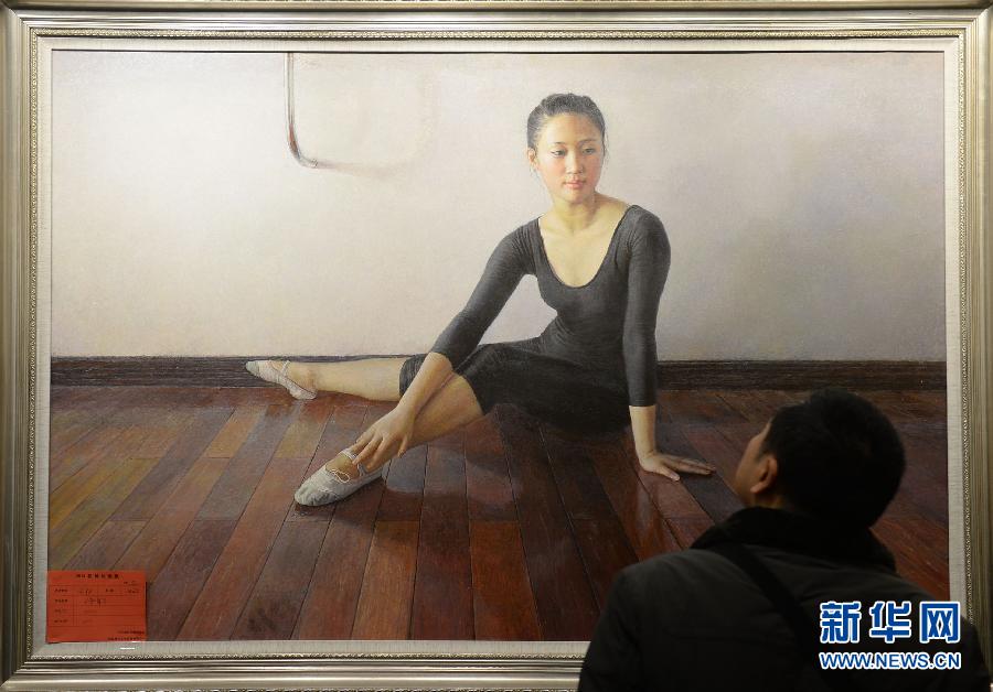 近日,“金达莱盛开的地方”朝鲜油画展在河北省图书馆举办,近六十幅朝鲜山水画和人物画吸引了众多市民参观。 新华社记者 王晓 摄