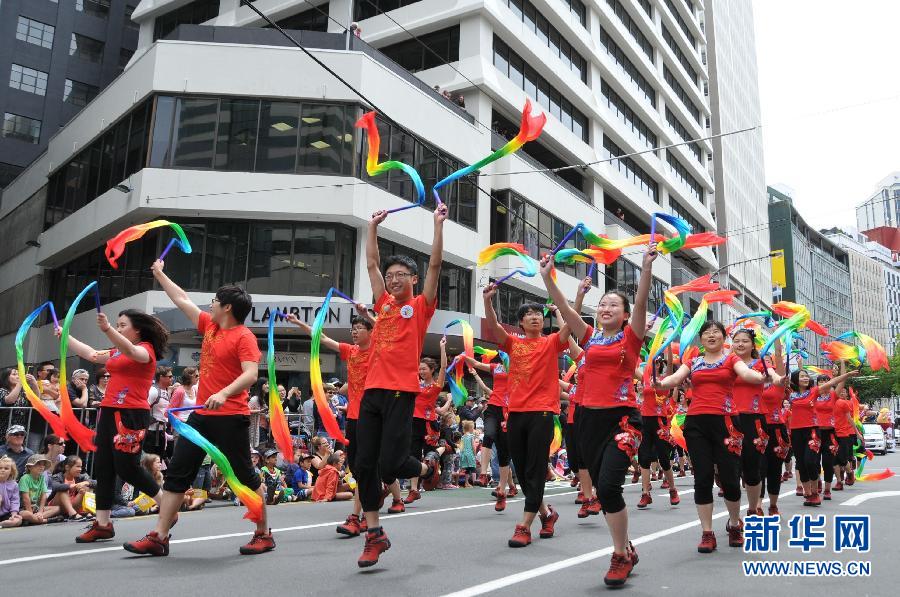 12月14日,在新西兰首都惠灵顿,中国青年政治学院学生艺术团参加圣诞巡游。新华社记者宿亮摄