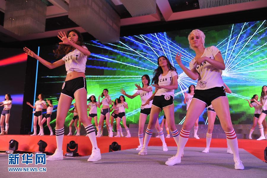 12月17日,参赛模特在比赛现场进行展示。当日,“新风尚·中国车模国际交流赛暨2014汽车模特新星全国选拔赛总决赛”在北京举行,来自全国32个分赛区的冠军齐聚北京,与15名来自法国、乌克兰等国家的外国模特同台比拼。新华社记者鲁鹏摄