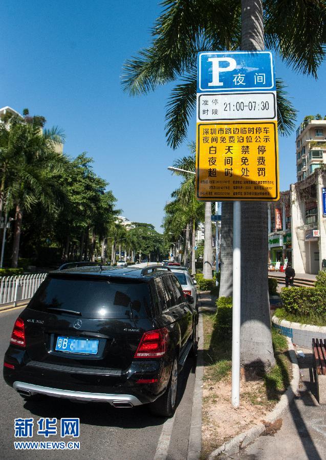 12月17日,在深圳南山区路边,车辆停放在划为白天禁停的路边停车位。 2015年1月起,广东深圳在试点片区的基础上,对原特区内约1.2万个路边停车泊位正式启动收费管理,违停最低罚款由200元提高至500元,收费时段为7:30-21:00。泊位不设专人值守,市民可以通过手机app、支付宝、微信支付或专线电话等方式进行缴费。这意味着深圳市民享受多年的路边停车“免费餐”即将结束。新华社记者 毛思倩 摄