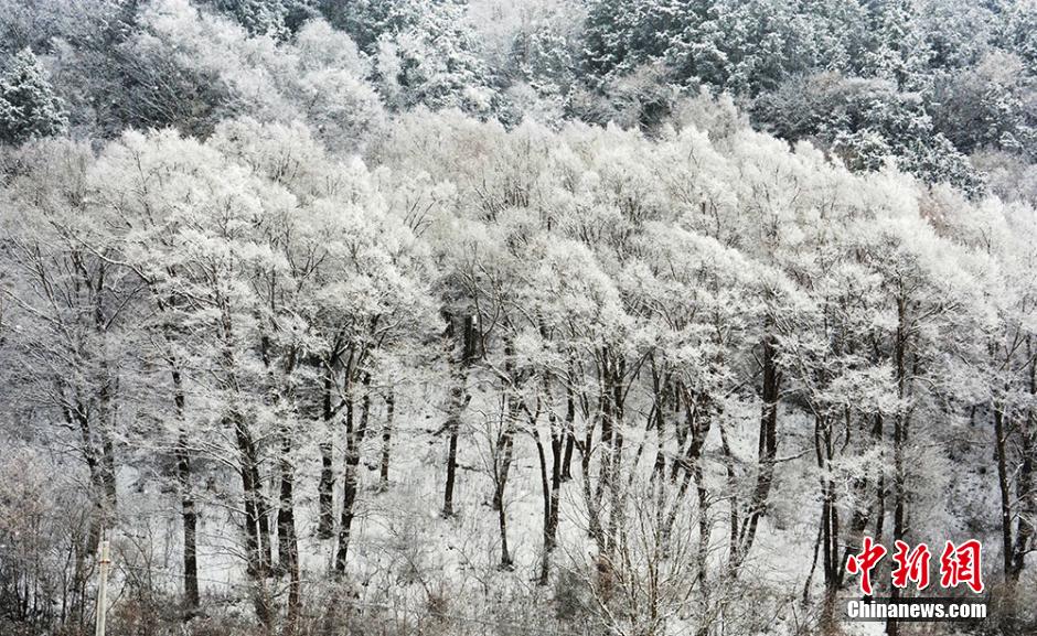 12月16日,一场大雪悄然降临至四川阿坝州理县,大地如同披上一层白纱,千树万树银装素裹,宛如一幅天然的水墨画,呈现出别样的美。图为被雪覆盖的树木。 万礼志 摄
