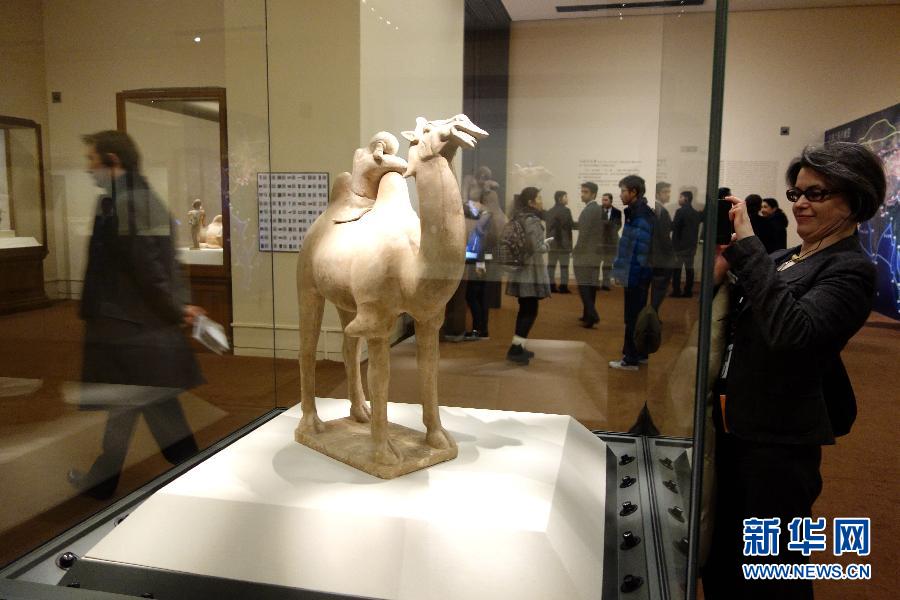 12月15日,一位外交官在“丝绸之路”文物展展品前拍照。新华社记者 杨依军 摄