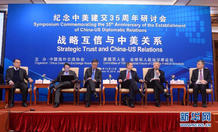 当日,由中国海外交流协会、美国百人会、全球华人政治学家论坛联合举办的侨界“纪念中美建交35周年研讨会”在北京举行。 新华社记者陈晔华摄