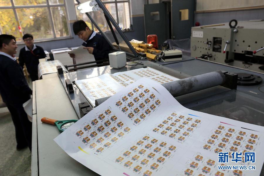 北京邮票厂工人在印刷生肖邮票《乙未年》特种邮票(11月28日摄)。