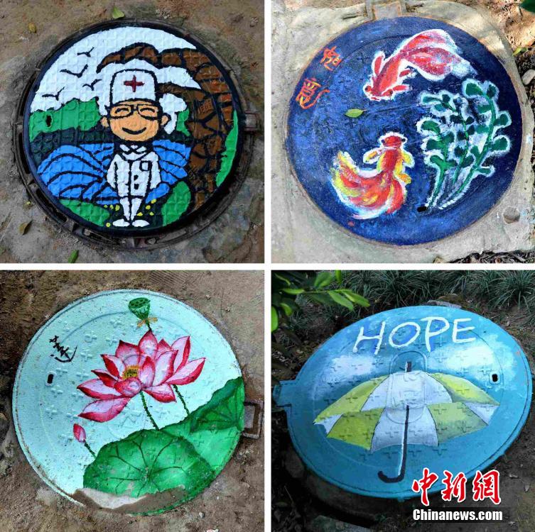 12月16日,在福州福建省肿瘤医院窨井盖上,一幅幅由医护人员绘制,惟妙惟肖的“井盖画”,吸引了许多过往病人和家属的眼球。多彩的井盖,不仅可以让医务工作者和病人放松了心情,也创造一个和谐温馨的康复环境。张斌 摄