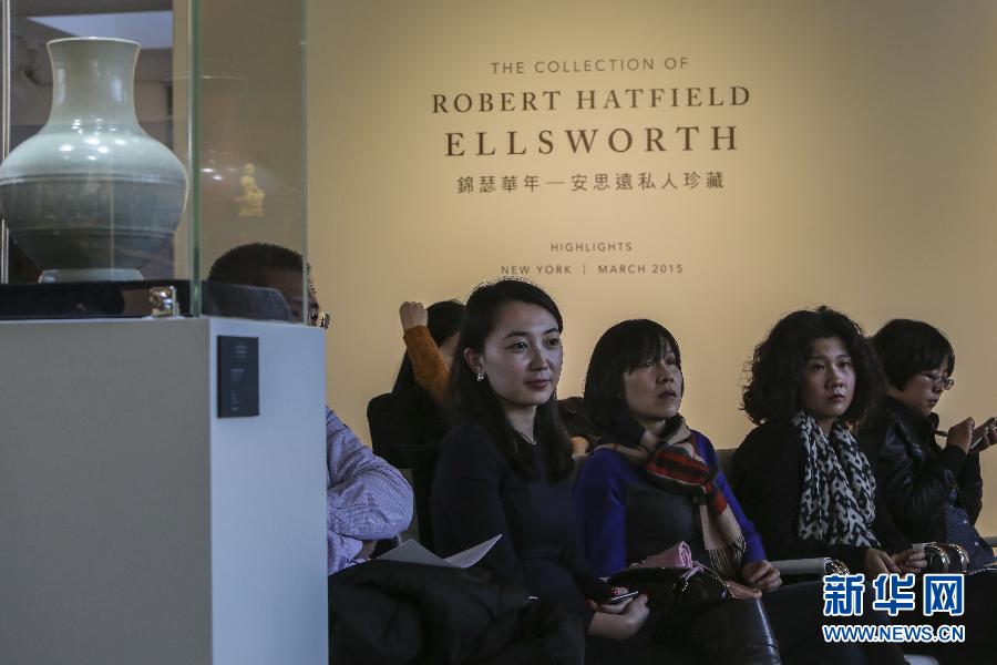 12月15日,人们在北京参加佳士得拍卖行举办的美国收藏家安思远藏品巡展研讨会。当日,由佳士得拍卖行举办的美国收藏家安思远藏品巡展在北京开幕。佳士得日前宣布获得授权,将拍卖于2014年8月辞世的美国著名学者、收藏家、古董商安思远的私人珍藏。佳士得将汇集逾2000件珍品,于2015年3月纽约亚洲艺术周期间举办公众展览和为期5天的现场拍卖及网上拍卖。安思远是一名对亚洲艺术品收藏及鉴赏情有独钟的收藏家和美国最具权威的国际亚洲艺术古董商之一。 新华社记者 张玉薇 摄
